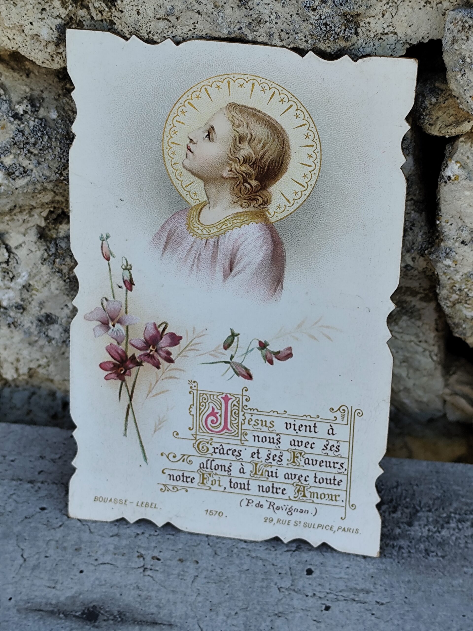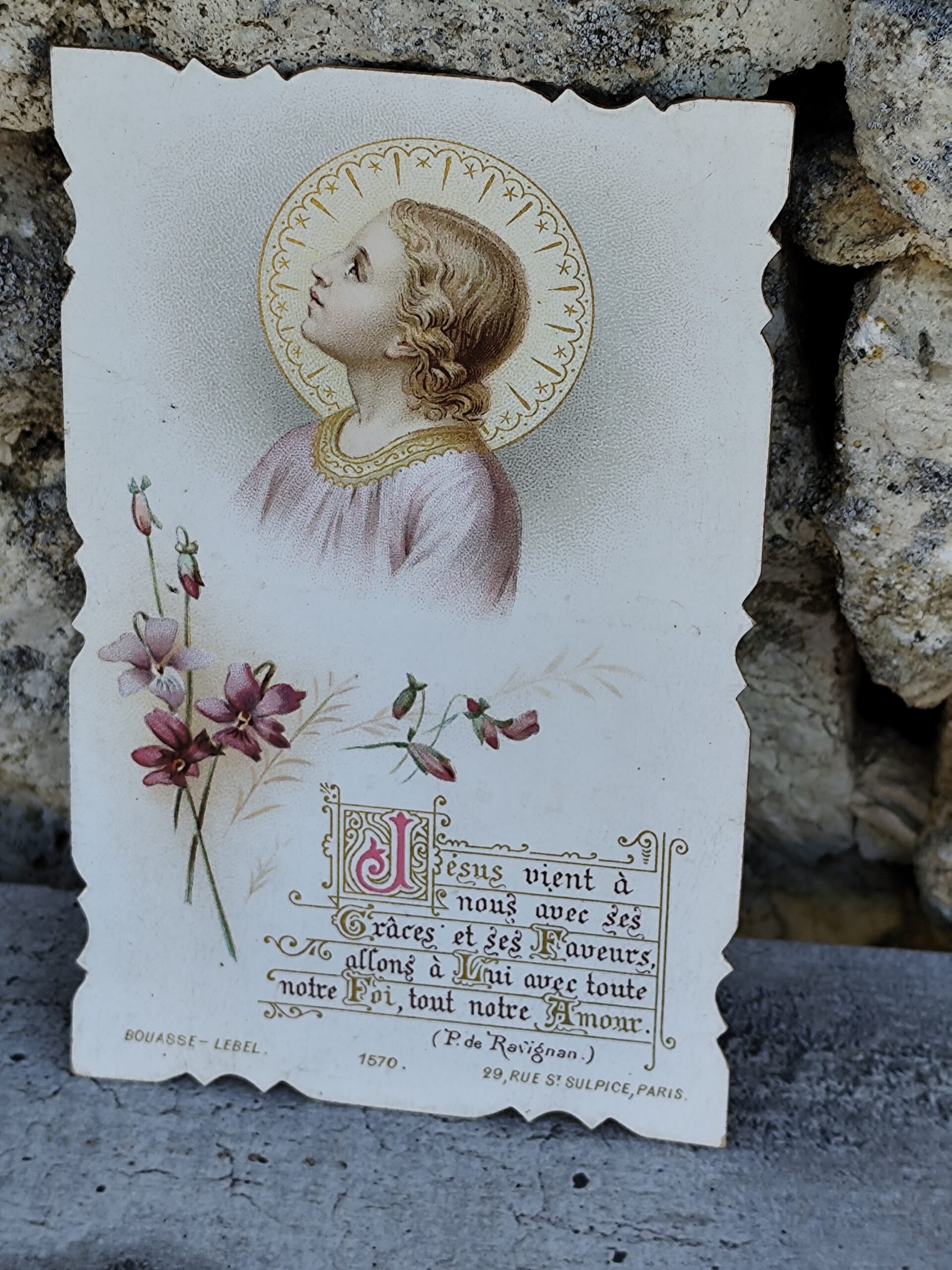 Image pieuse ancienne Bouasse‑Lebel – Jésus et fleurs.