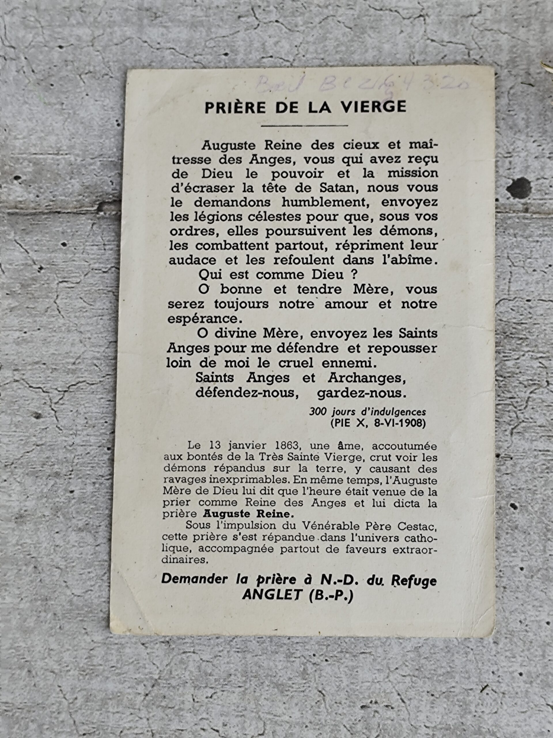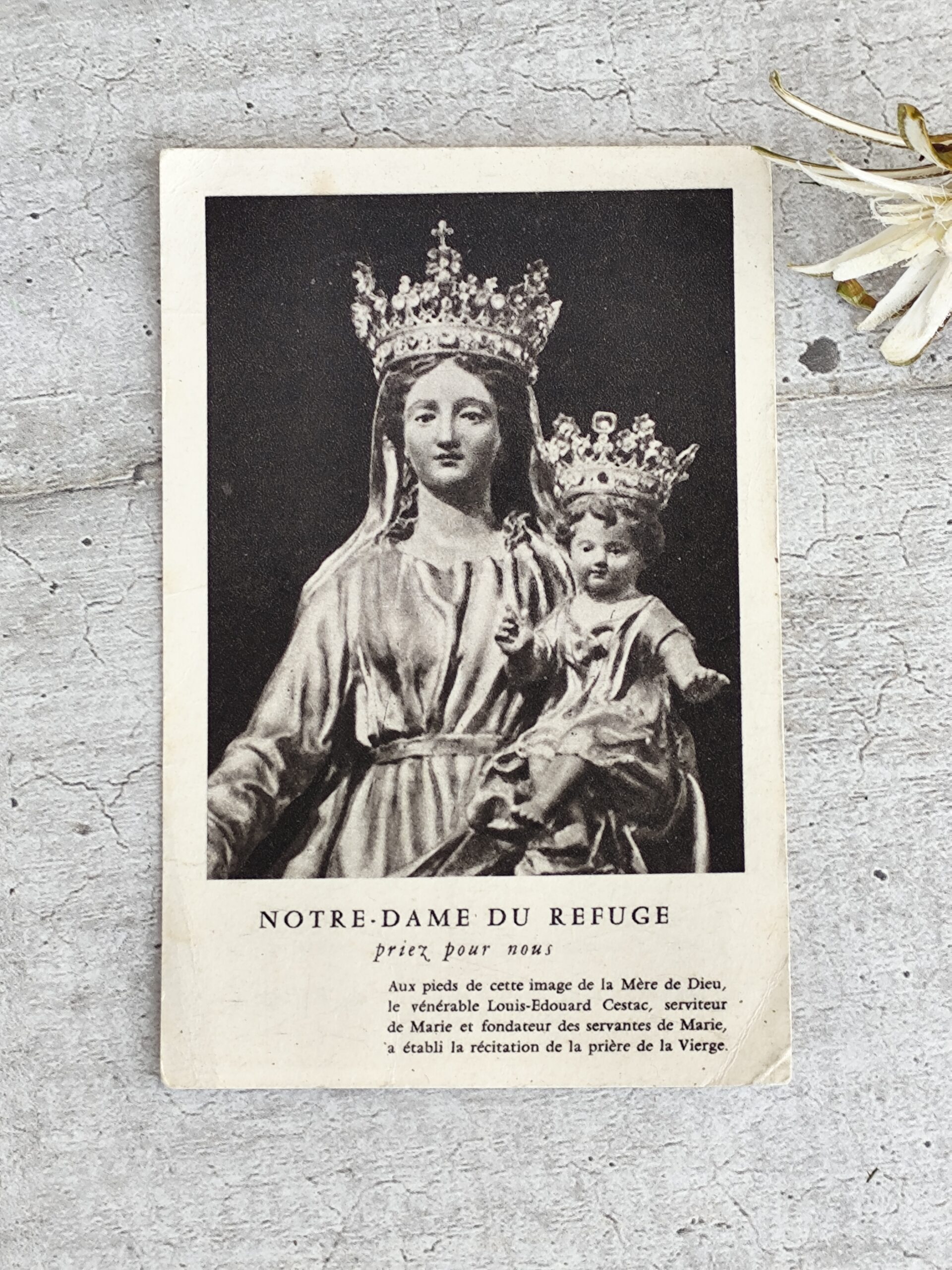 Carte religieuse ancienne – Notre‑Dame du Refuge – Prière & texte du Vénérable Cestac.