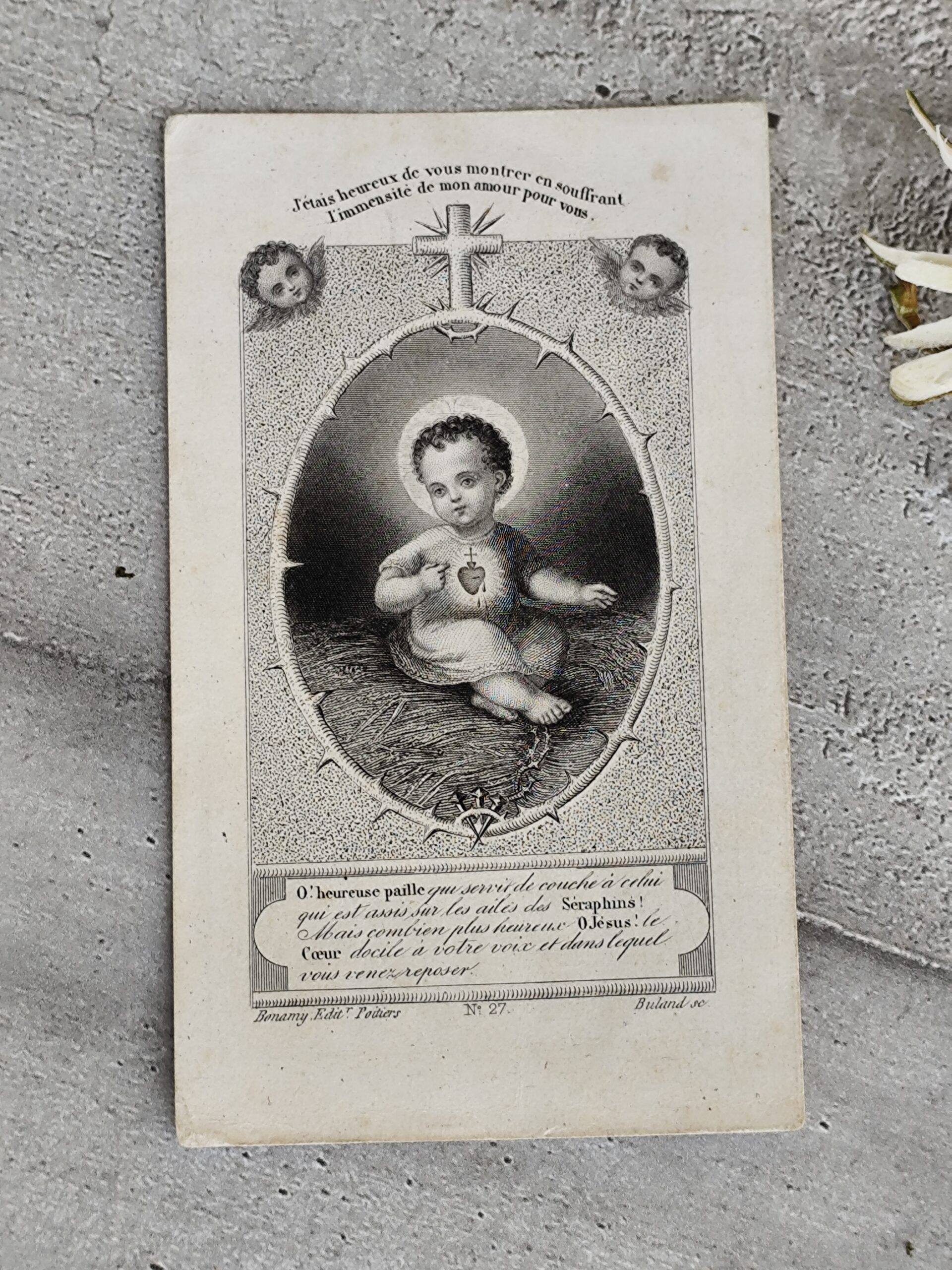 Image pieuse ancienne – Divin Enfant & Sacré‑Cœur – Saint Bernard – Bonamy Poitiers n°27.