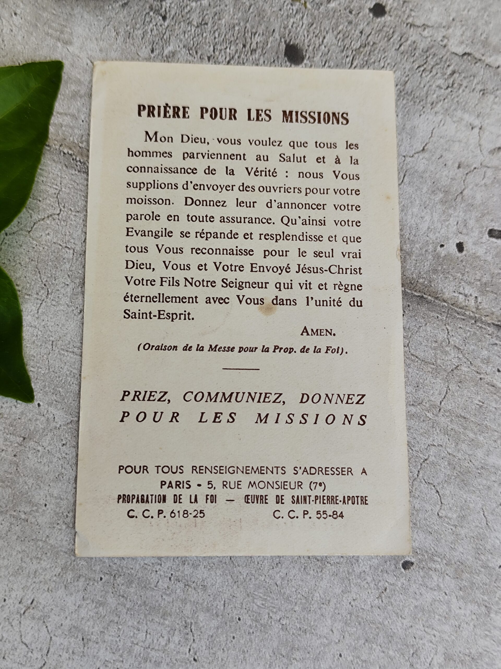 – Verso : Prière pour les Missions (Propagation de la Foi)