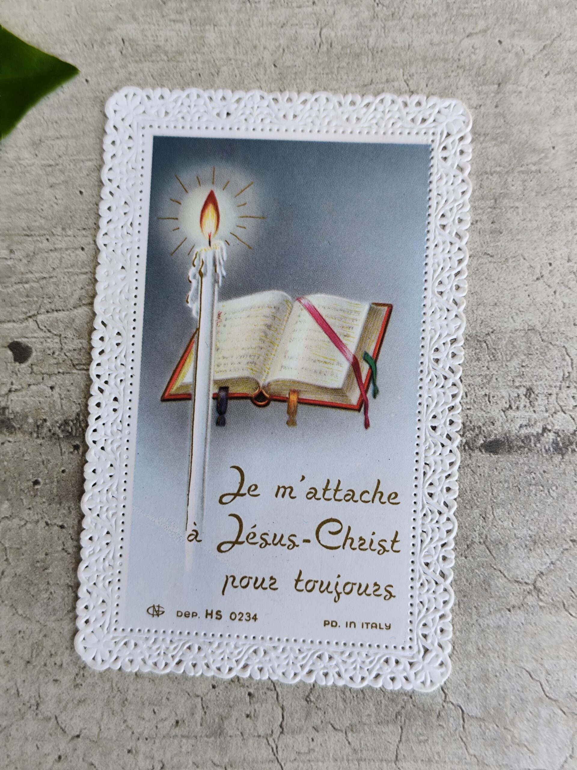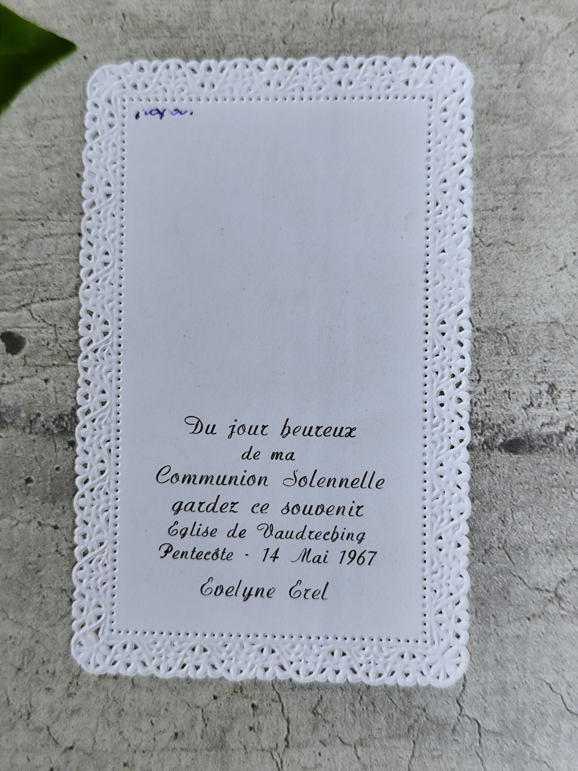 Élégante carte canivet religieuse italienne datée de 1967, finement ajourée, typique des productions dévotionnelles du milieu du XXᵉ siècle.
