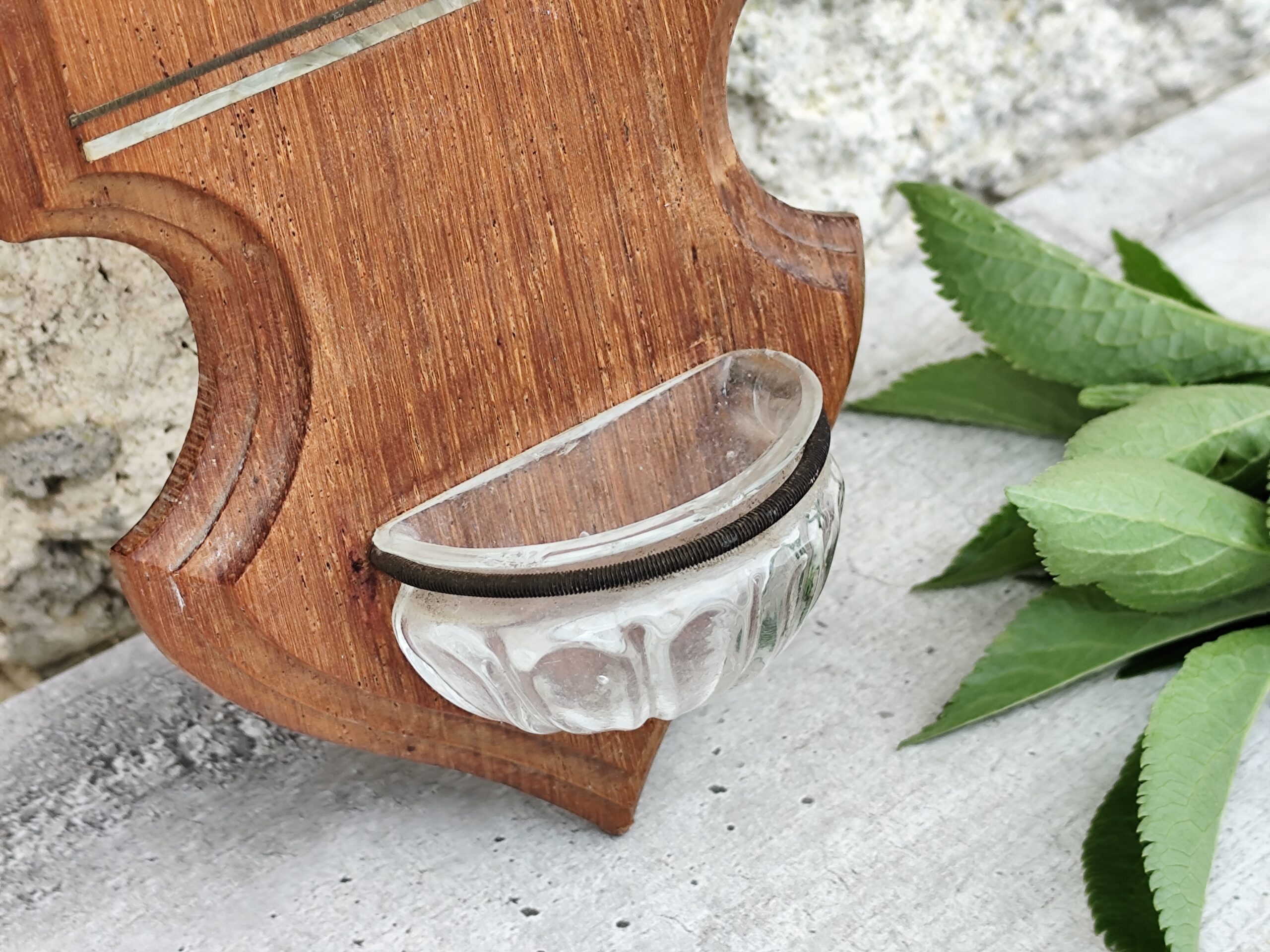 – Matières : bois, métal, coupelle en verre