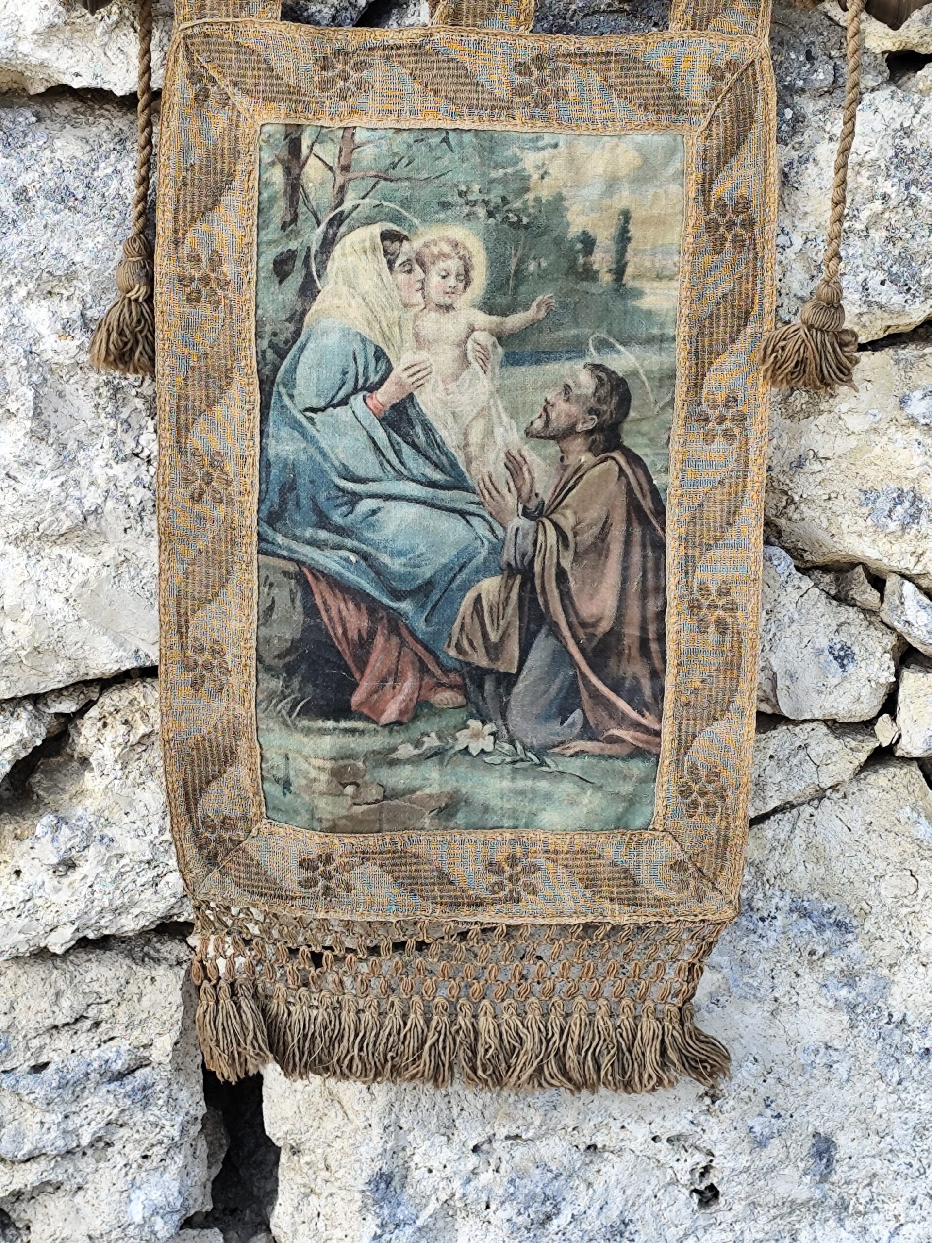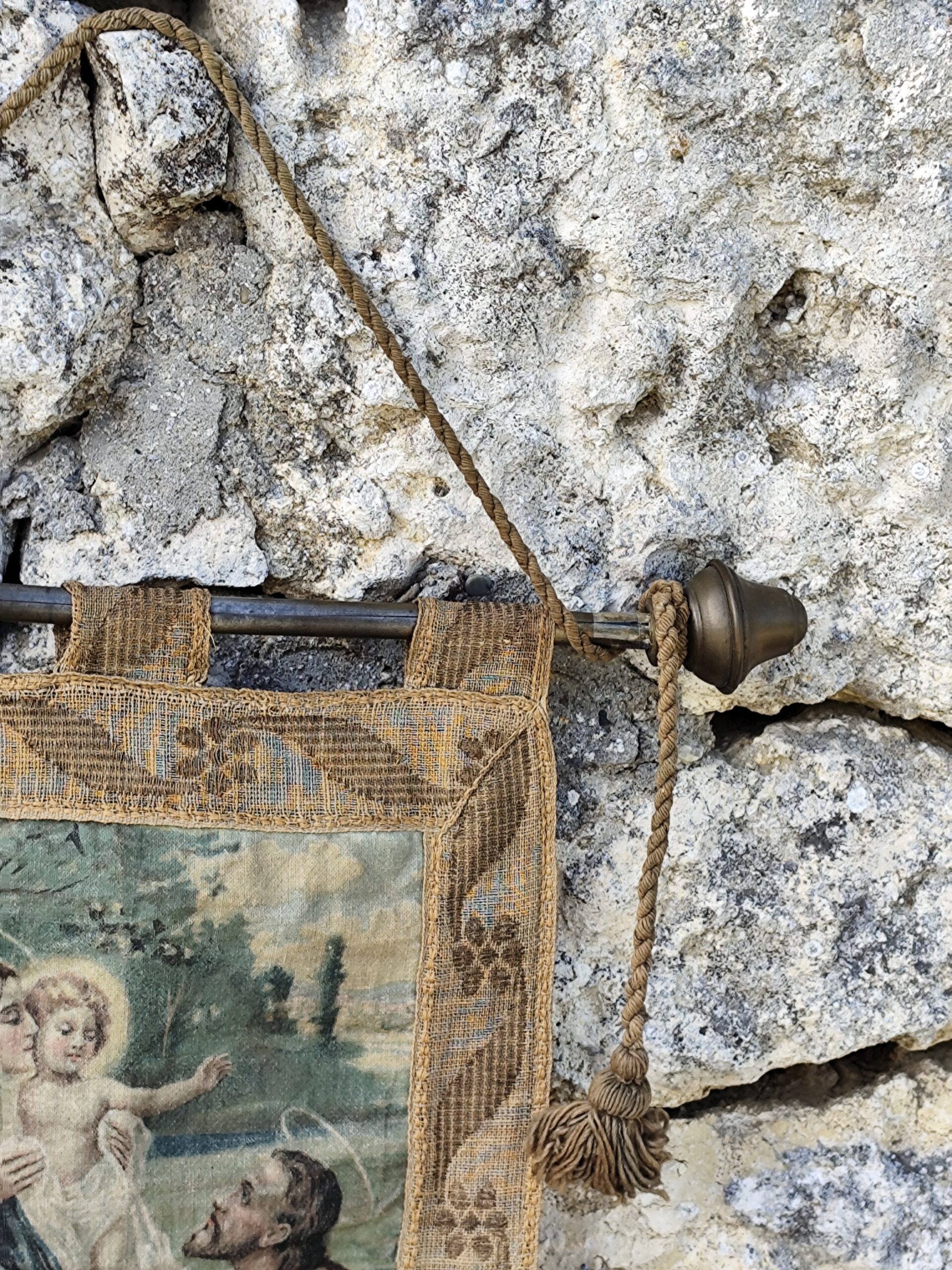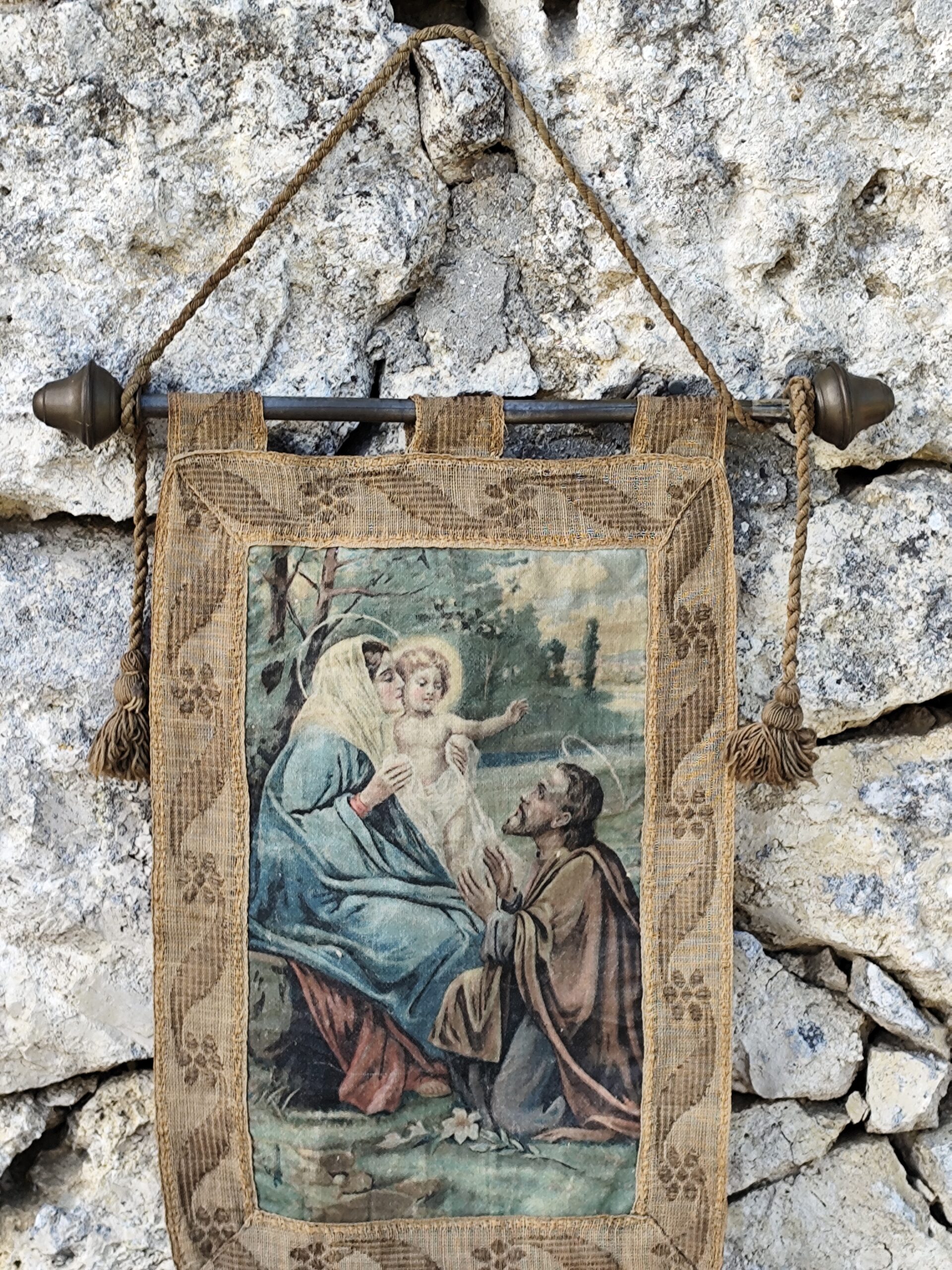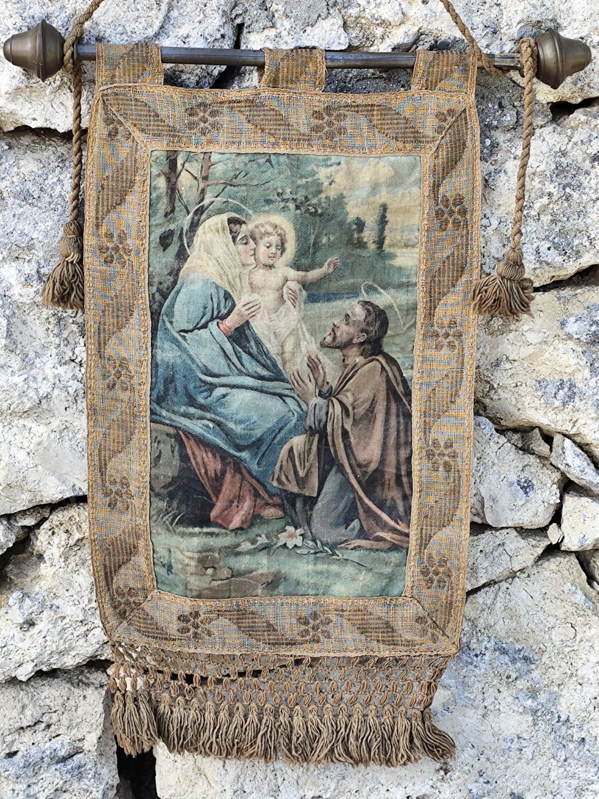 Ce type de tenture était traditionnellement accroché dans les maisons, les chapelles ou les espaces de prière pour apporter paix, bénédiction et sérénité.