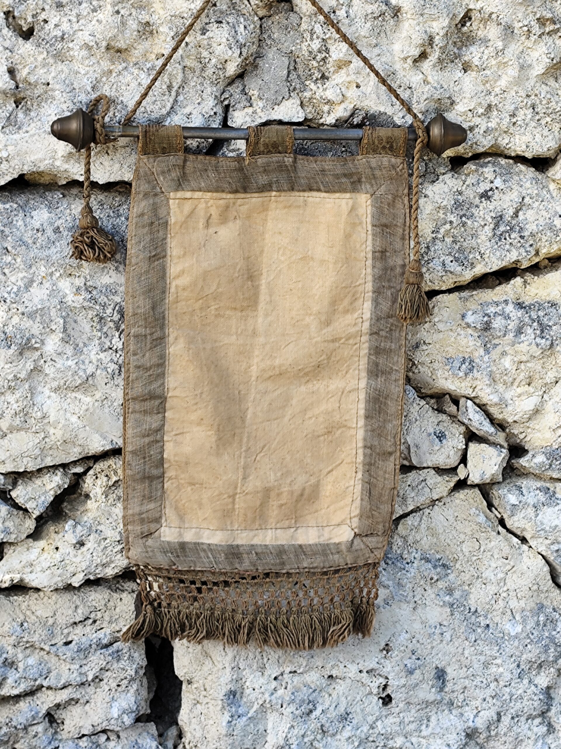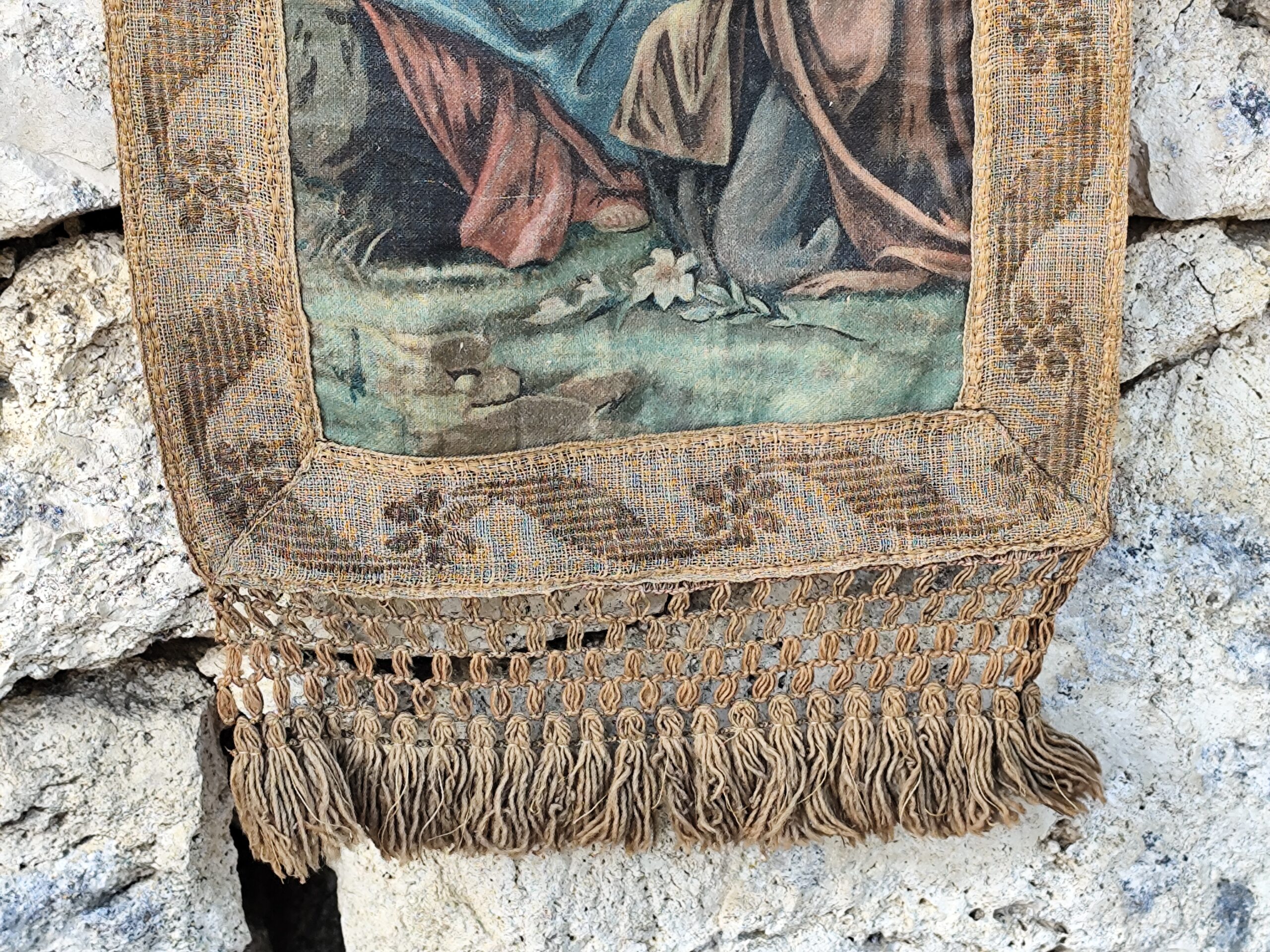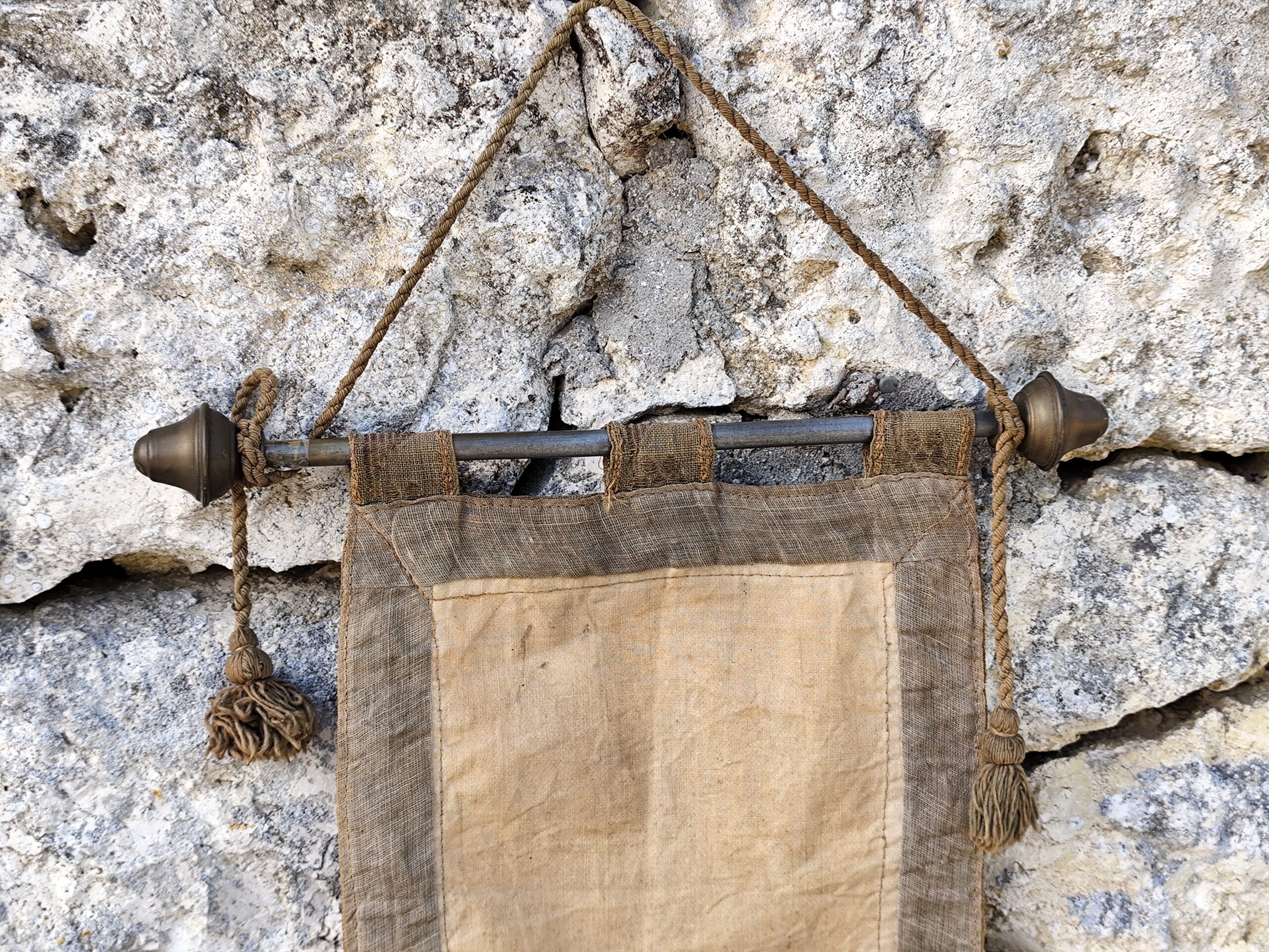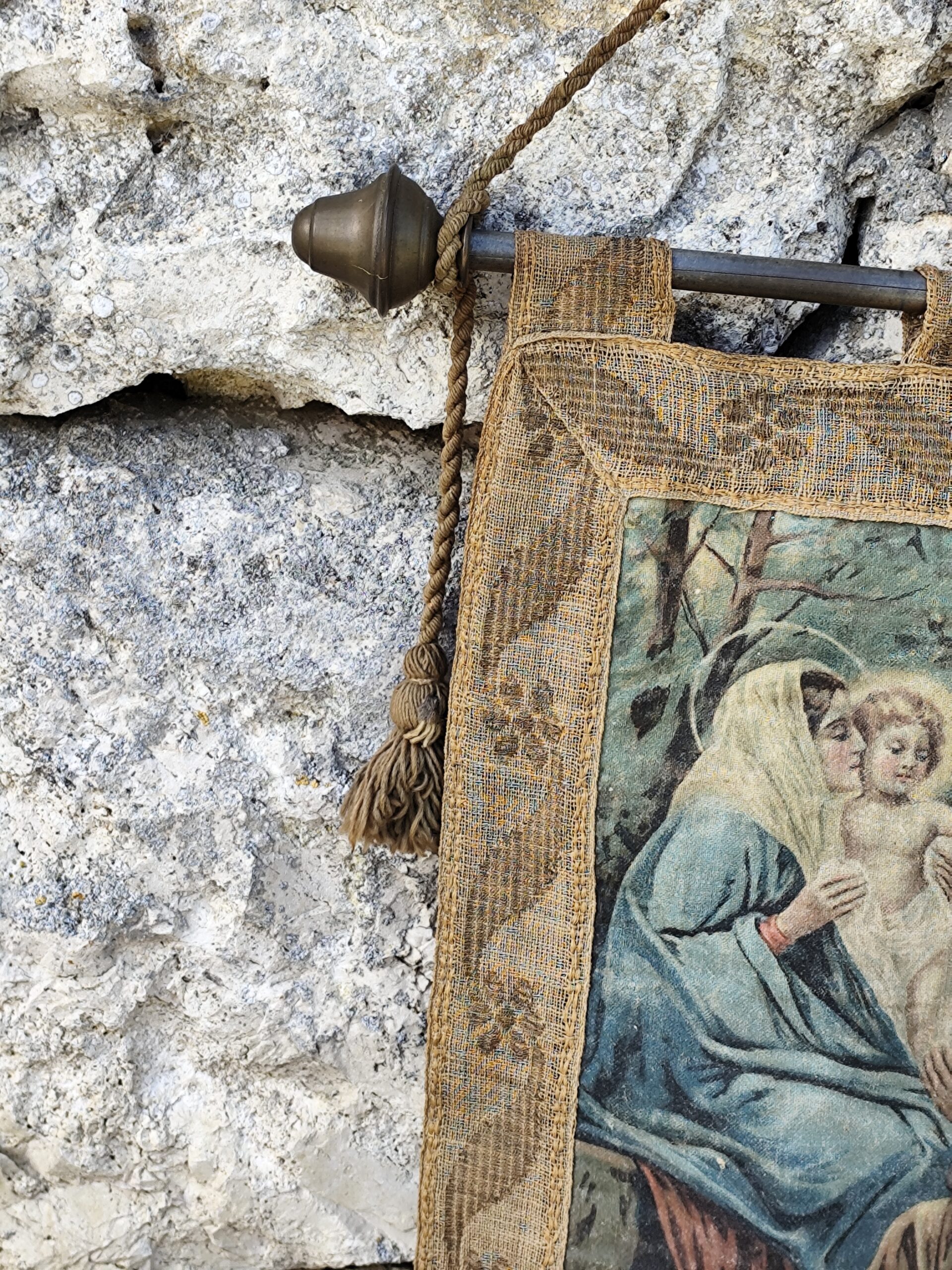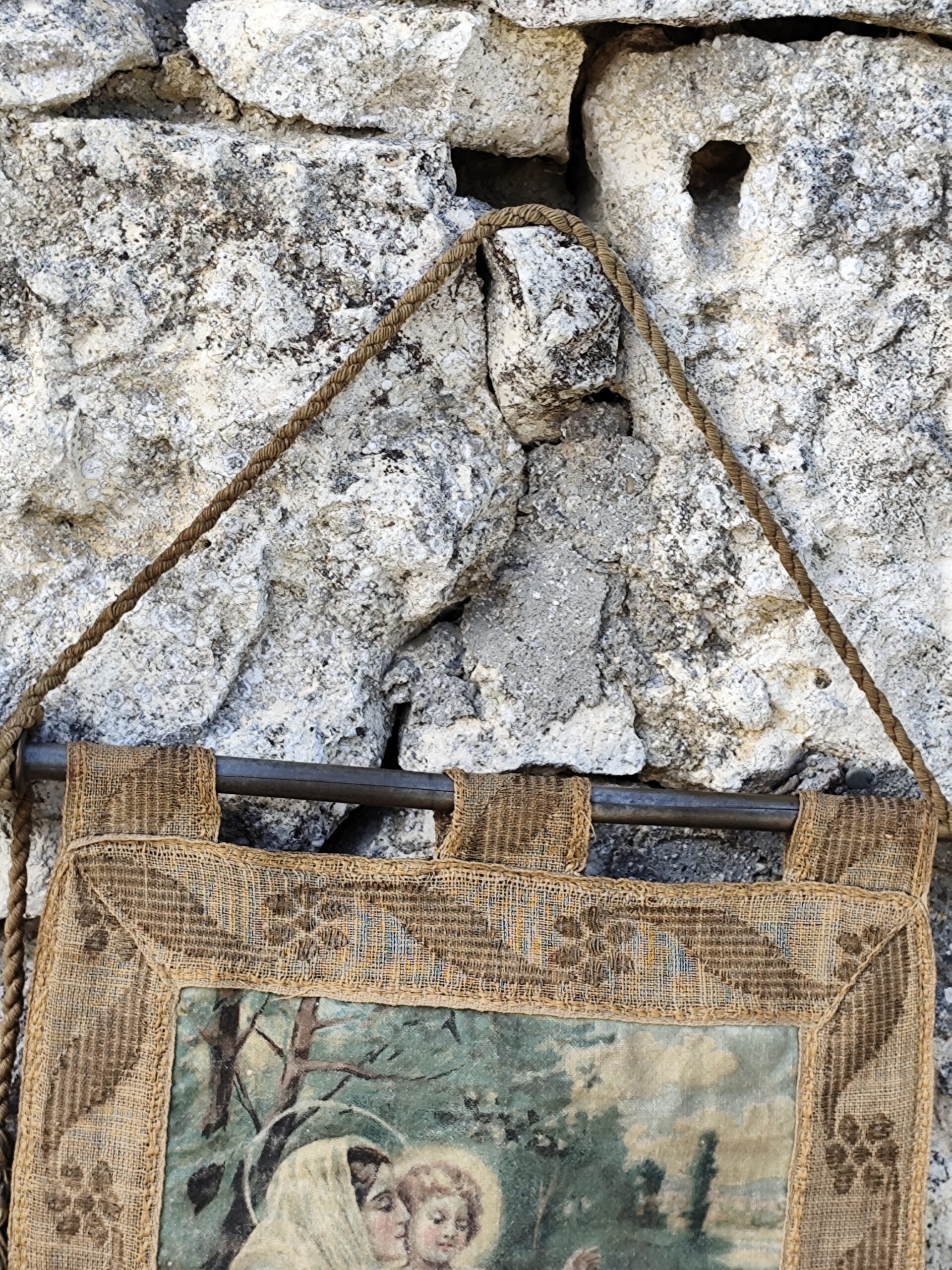 Ce type de tenture était traditionnellement accroché dans les maisons, les chapelles ou les espaces de prière pour apporter paix, bénédiction et sérénité.
