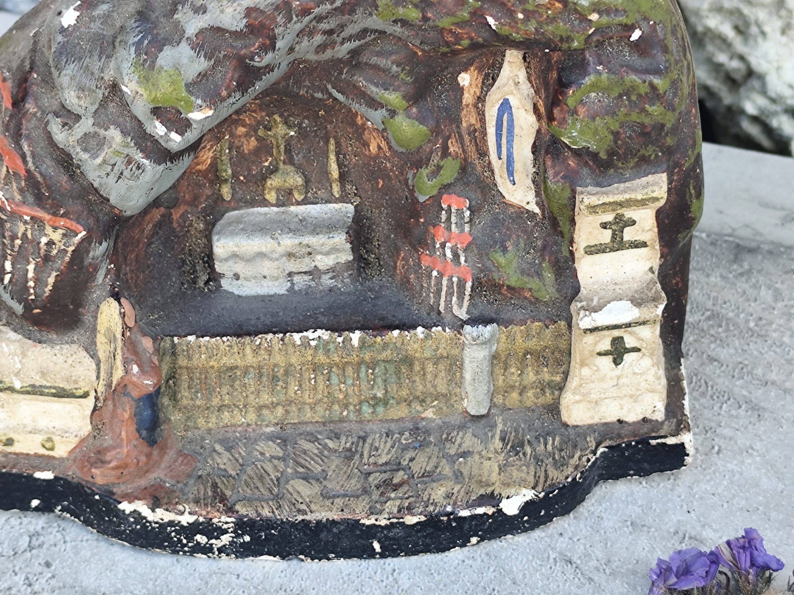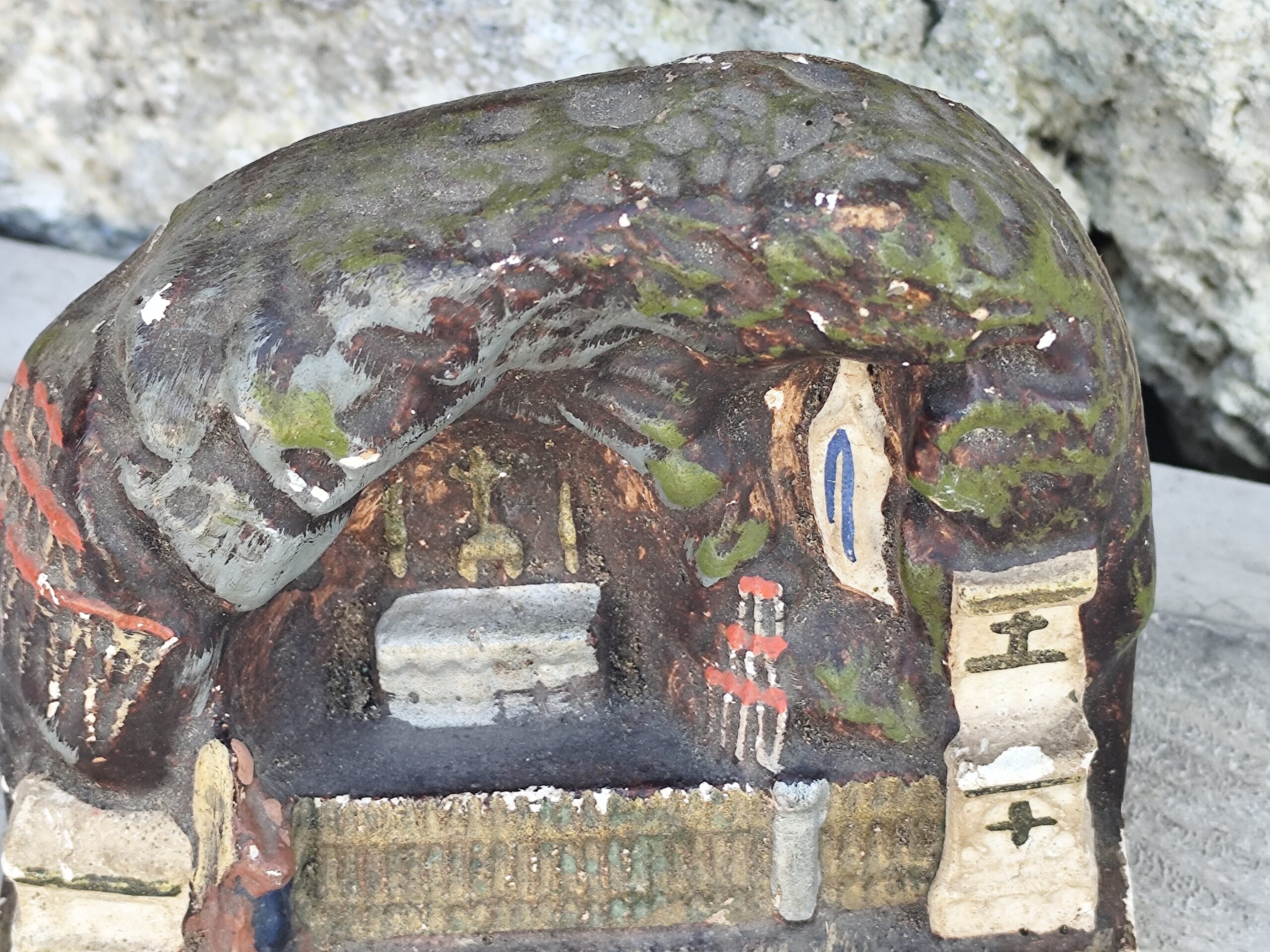 vintage belle petite grotte de sanctuaire autel catholique chrétien en plâtre .