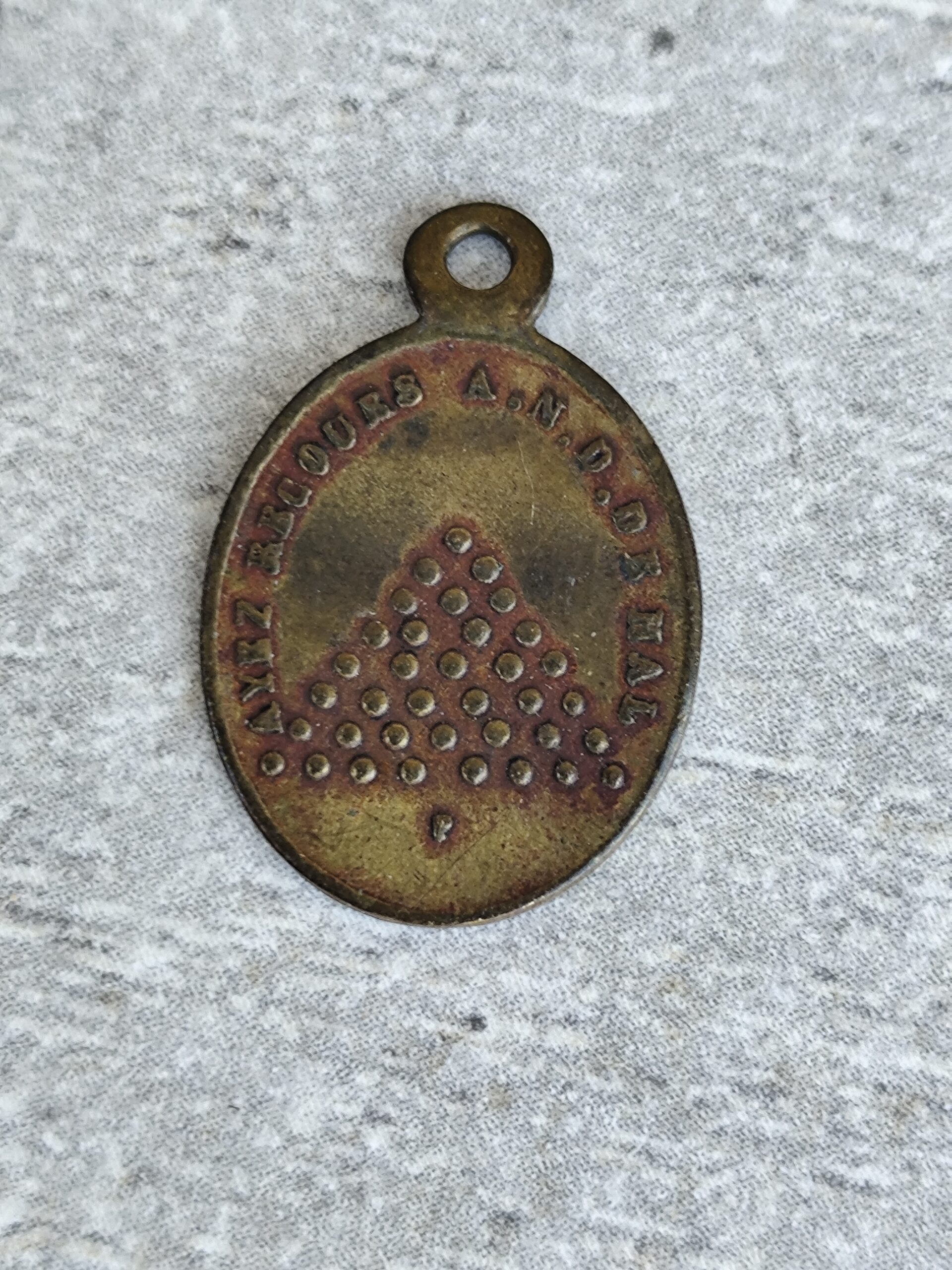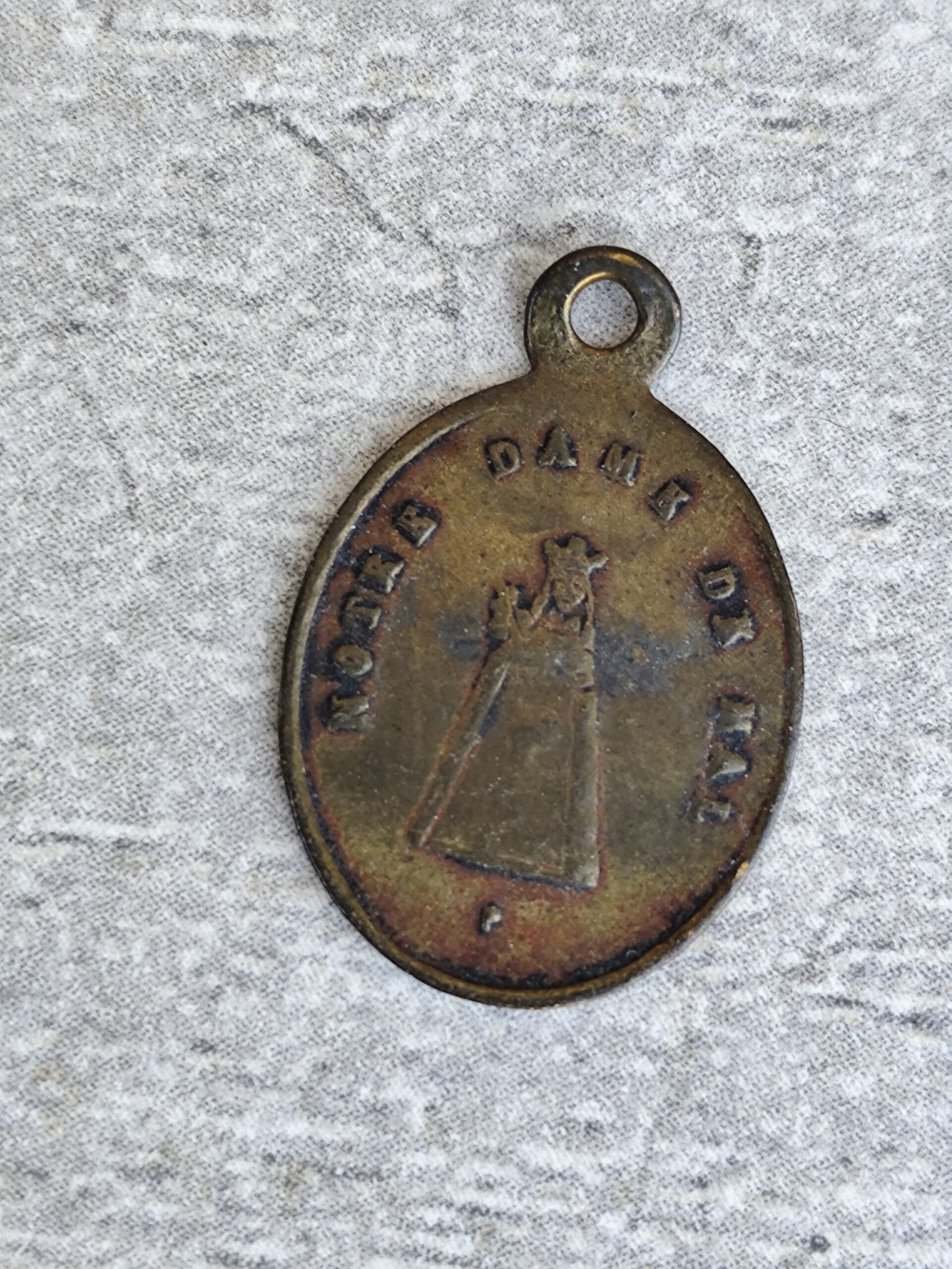 1.Antique médaille religieuse notre dame du mai en laiton.