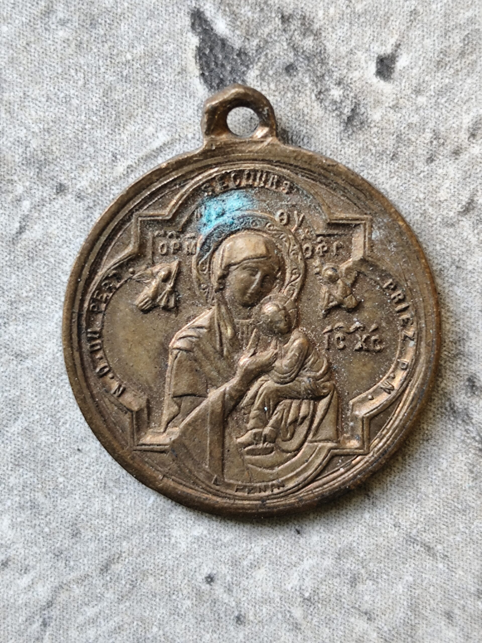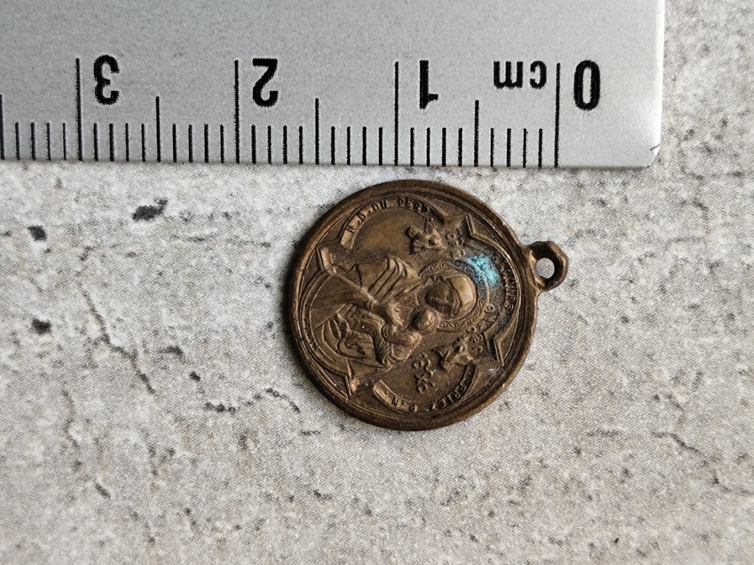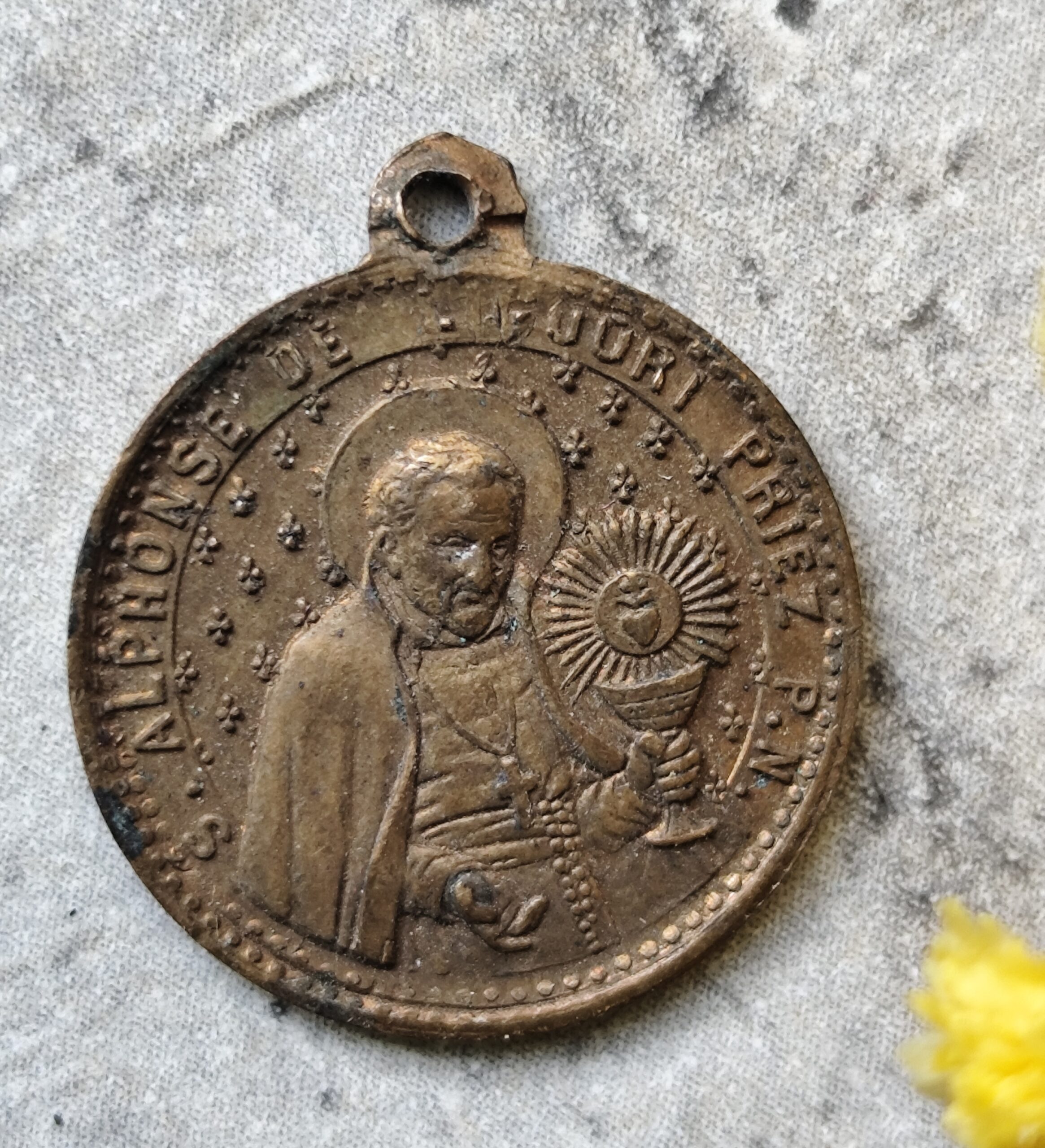 Médaille religieuse de saint Alphonse de ligori et notre dame du perpétuel secours en laiton.