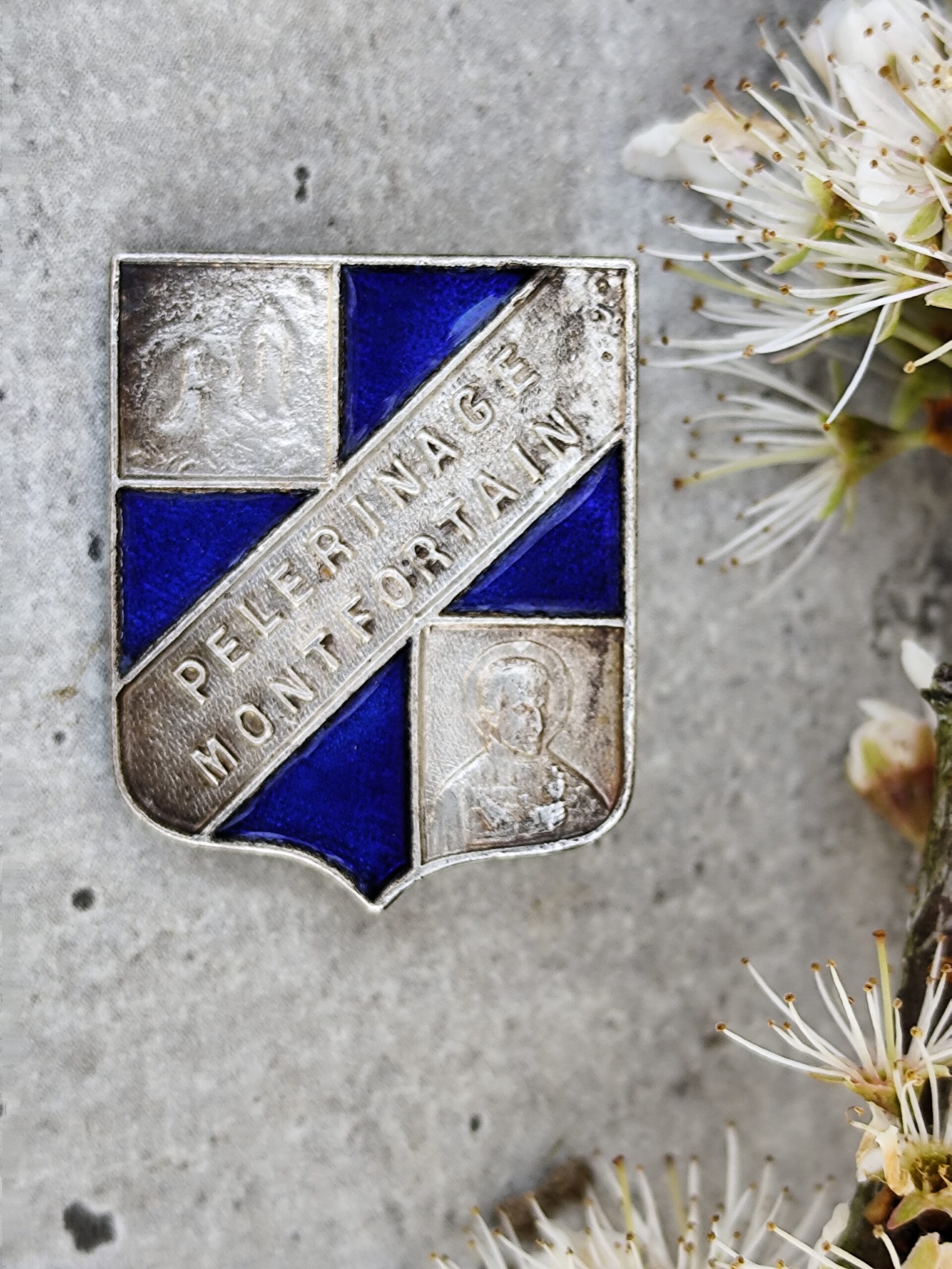 Cette broche ancienne du Pèlerinage Montfortain est un véritable témoin de foi et d’histoire.