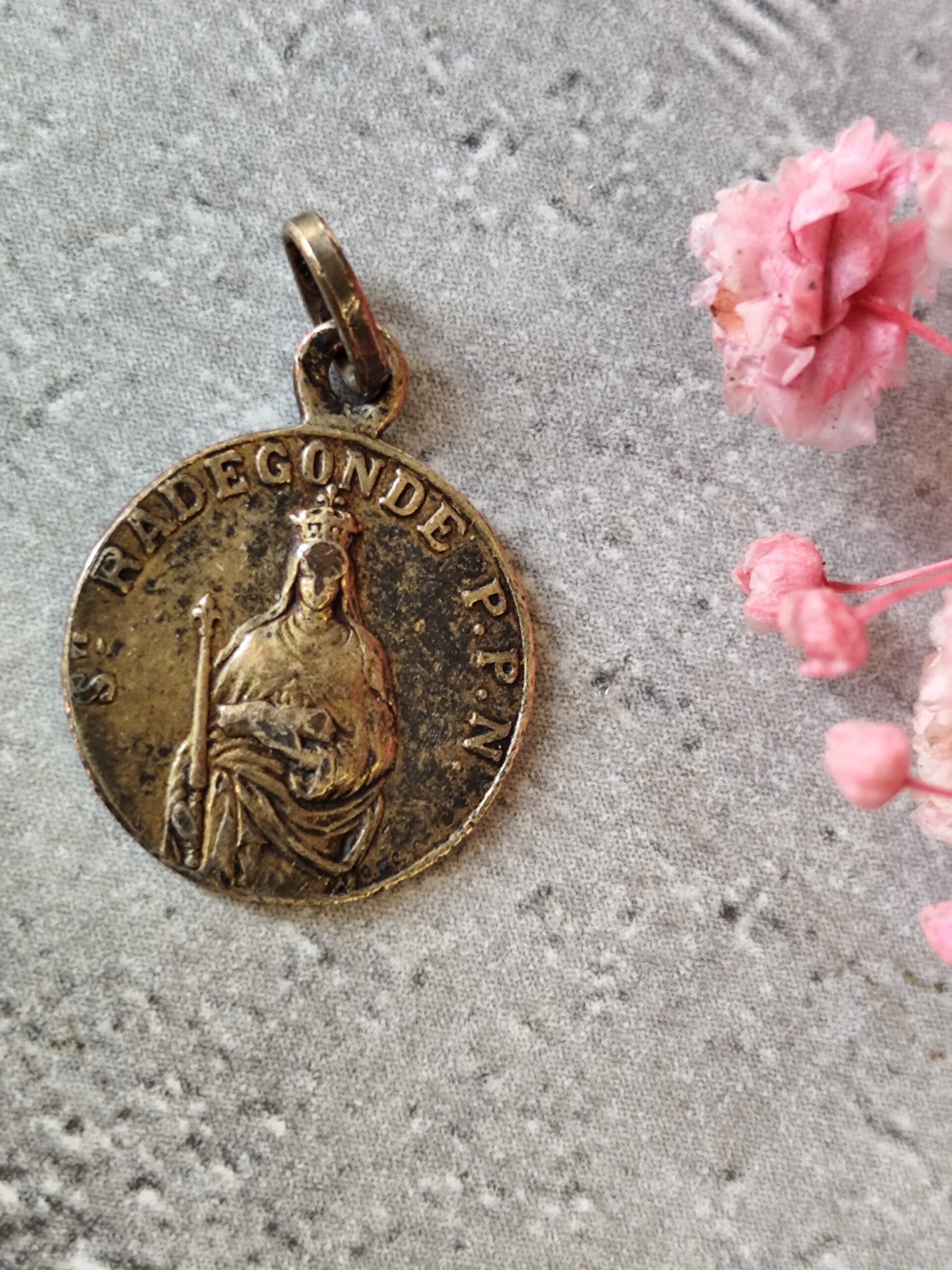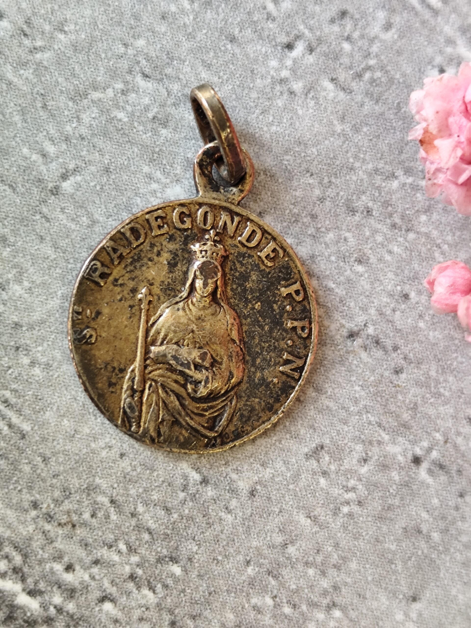 Médaille ancienne de Sainte Radegonde – Protection, guérison et douceur spirituelle.