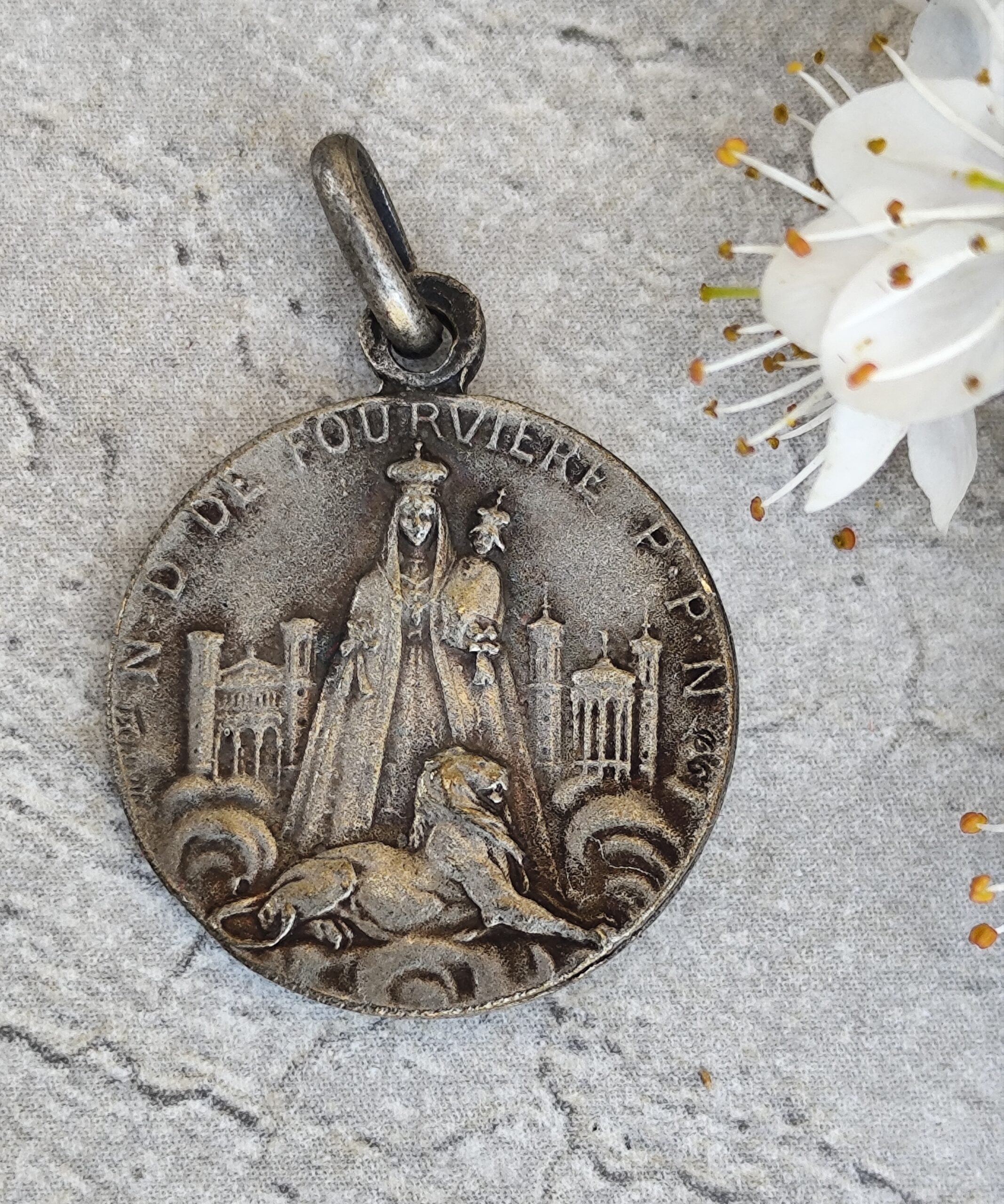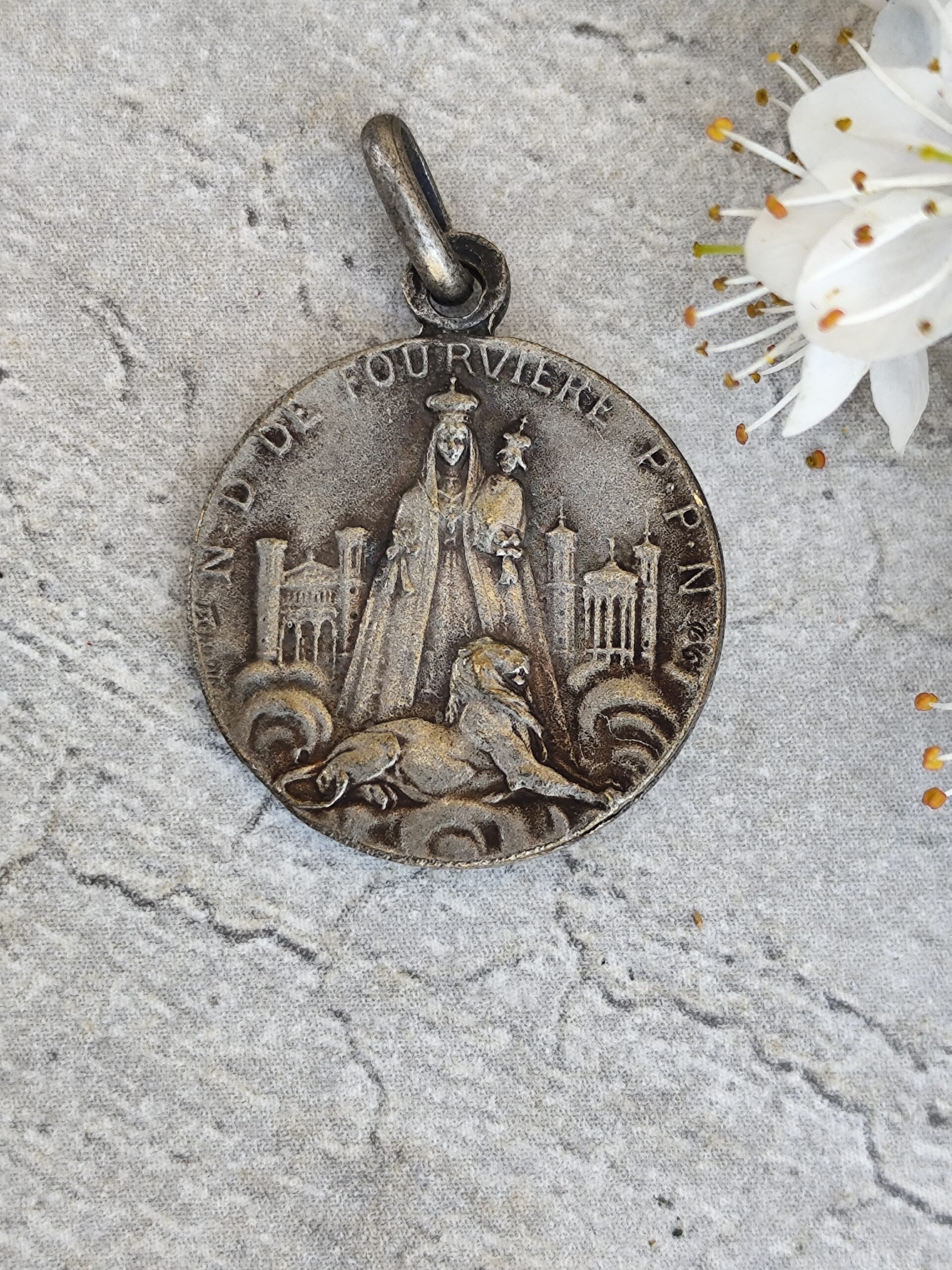 Médaille Ancienne Notre‑Dame de Fourvière & Christ Couronné d’Épines.