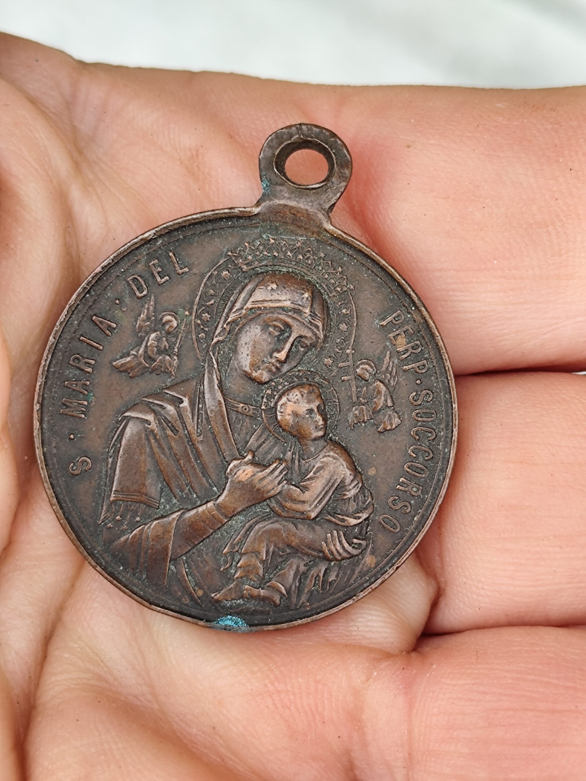 Médaille en Cuivre – Jésus-Christ Passion & Notre-Dame du Perpétuel Secours Objet spirituel – Protection – Héritage sacré