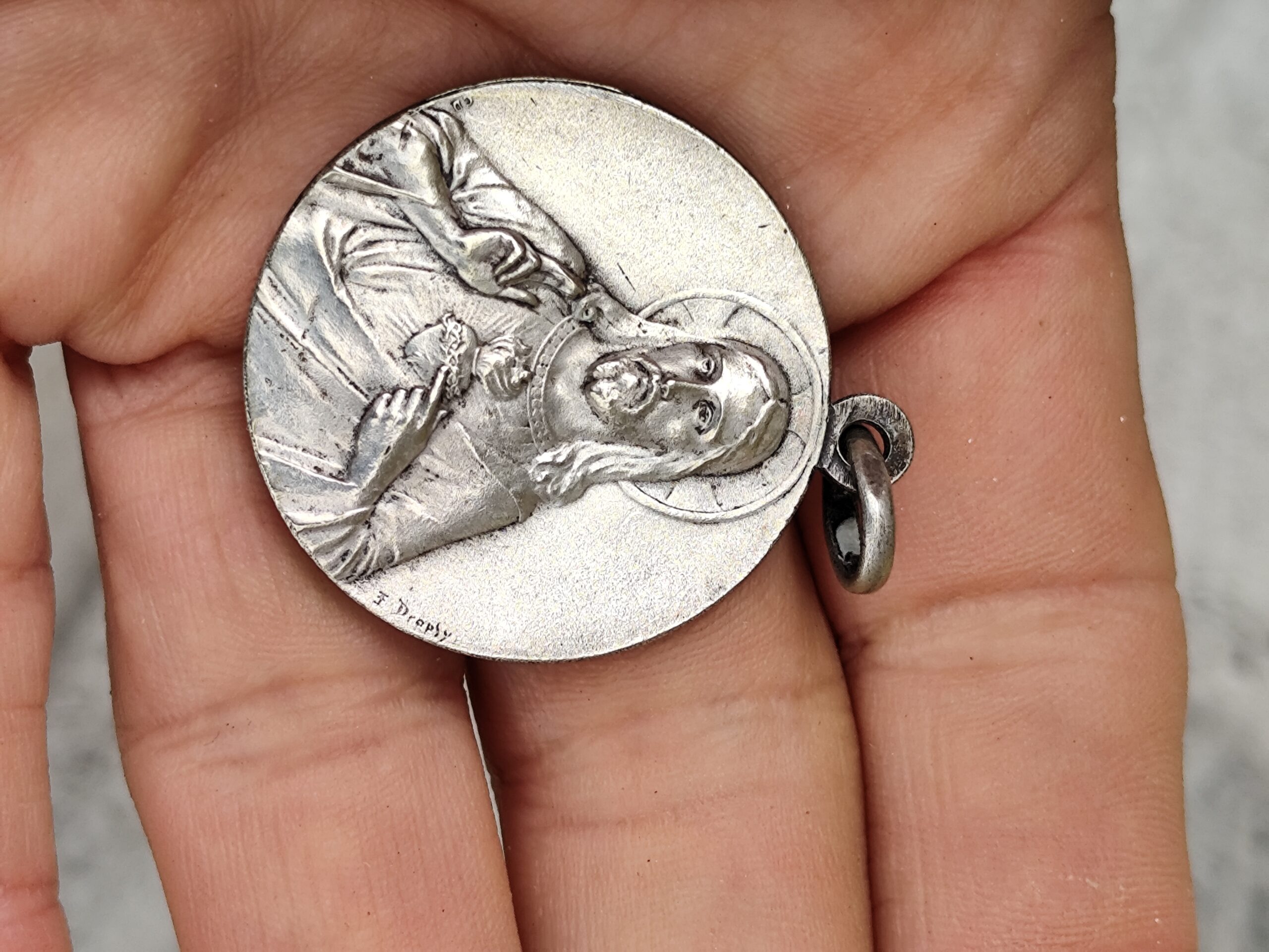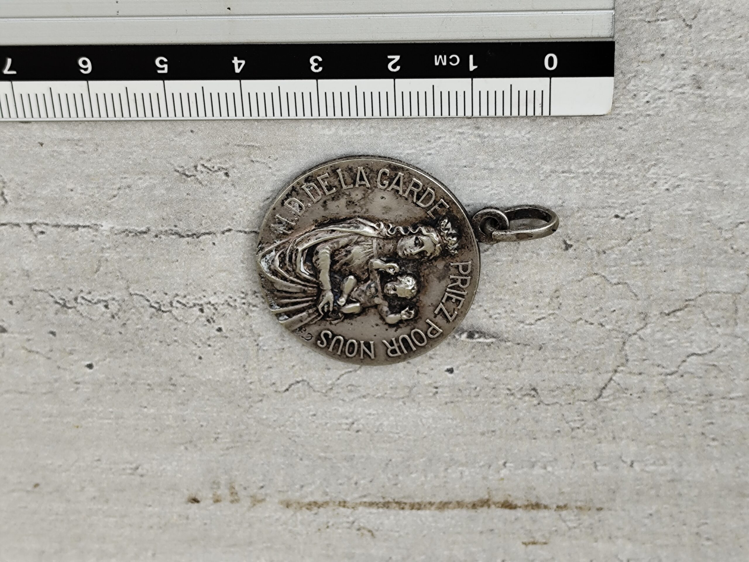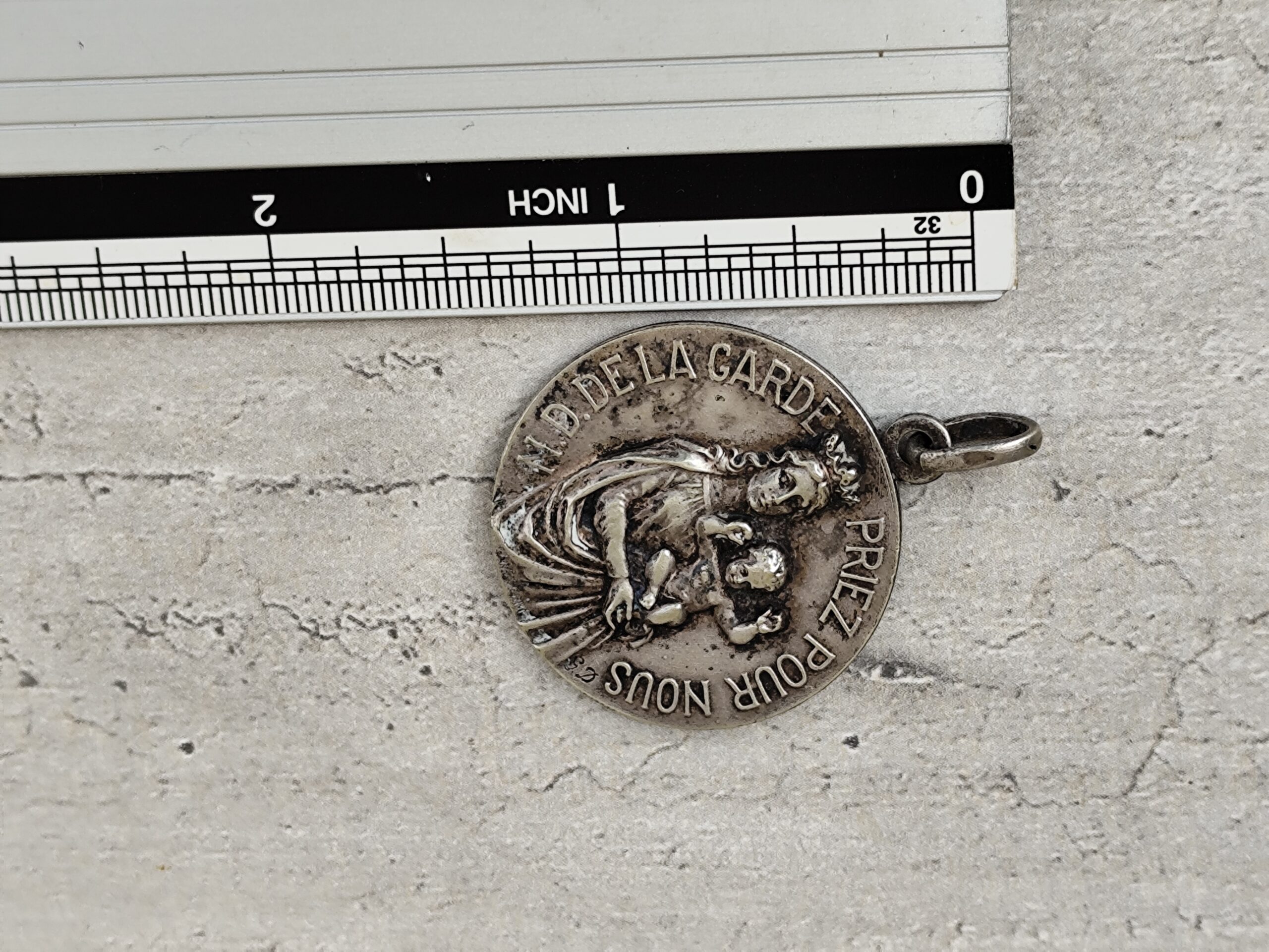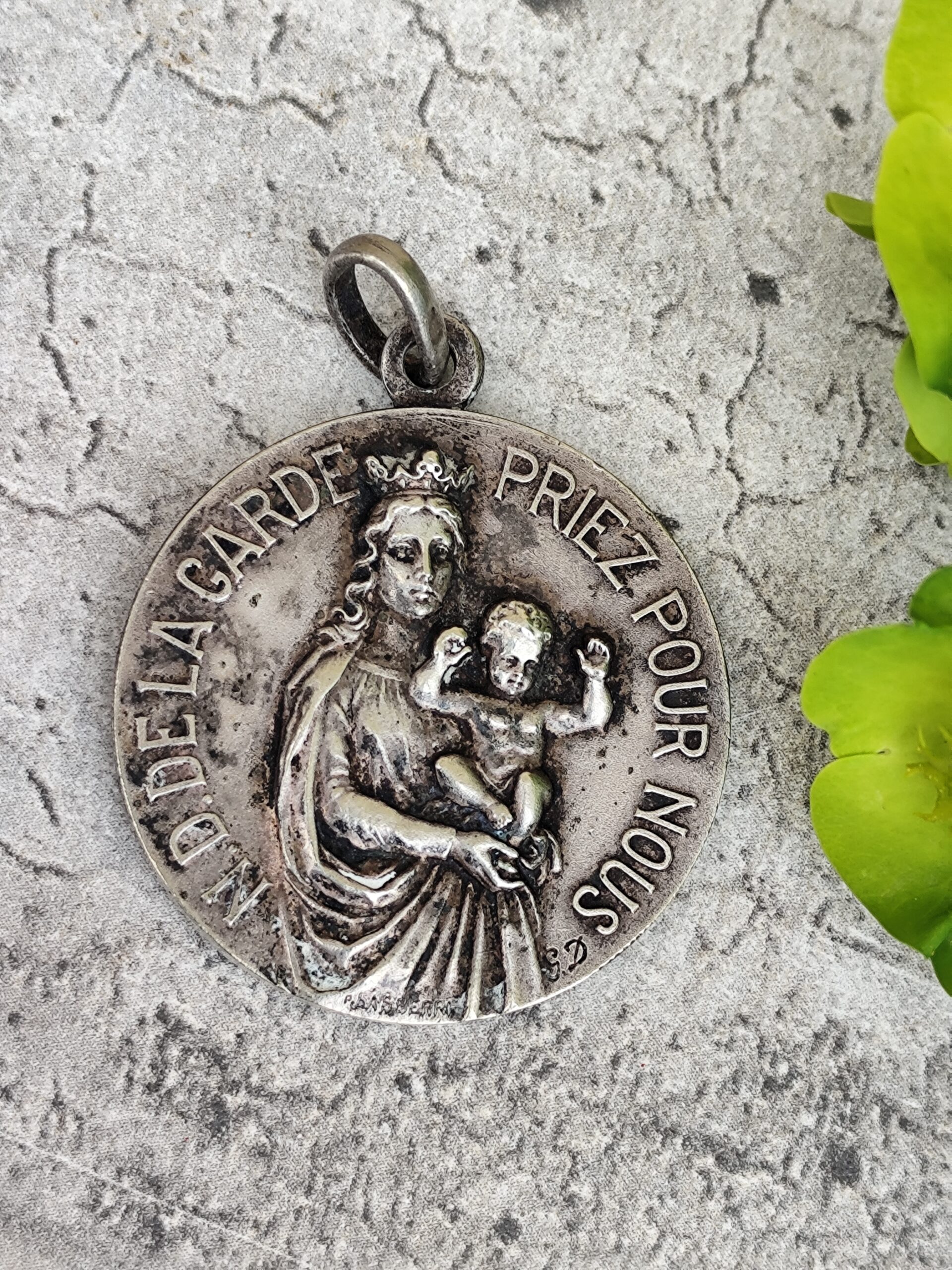 Superbe médaille ancienne représentant Notre‑Dame de la Garde, protectrice des marins et des voyageurs.