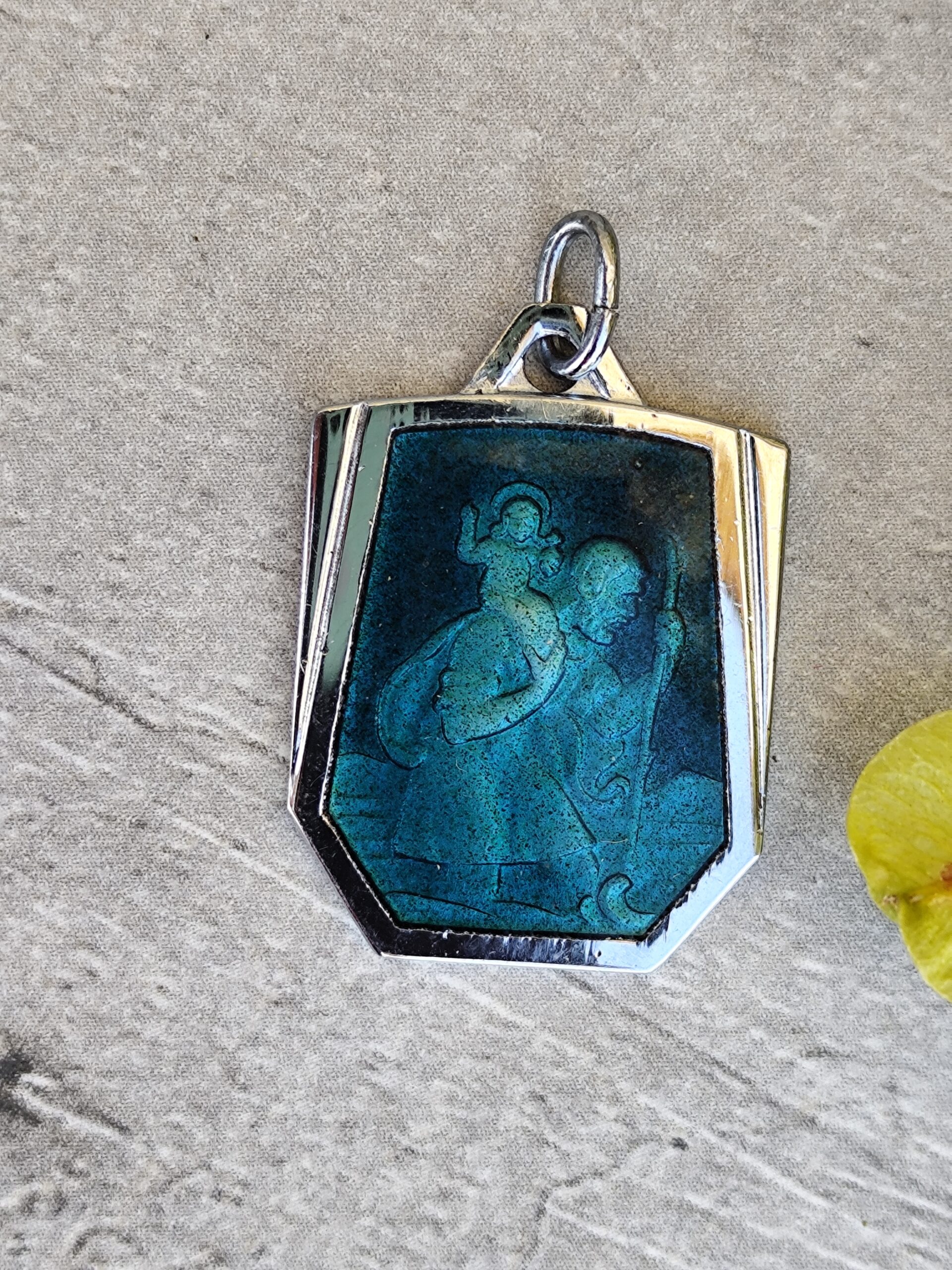 Médaille religieuse de Saint Christophe en émail