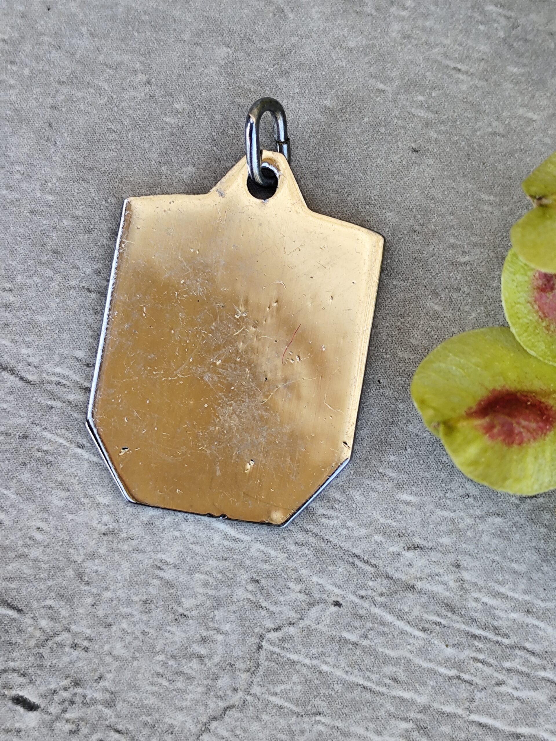 Cette médaille en émail possède une présence douce, presque lumineuse.
